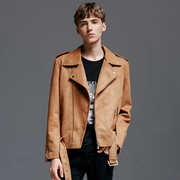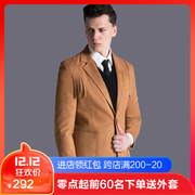 潮诀麂皮西服男2018秋冬新款一粒扣流苏修身鹿皮绒西服上衣潮1113
