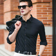 工装长袖衬衫男2018春秋新款时尚休闲大码修身纯色打底上衣舒适款
