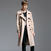 潮诀宽松风衣过膝长款大码2019早春新款英伦超长军绿外套男11041