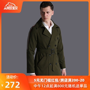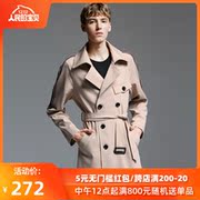 潮诀宽松风衣常规款男2019春秋新款拼织带英伦外套军绿色大码1105