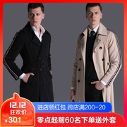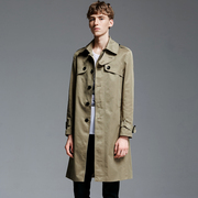 潮诀超长风衣过膝男军绿2019春秋新款长款大衣双排扣大码外套1104