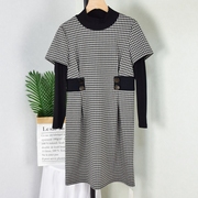 A21AL578 2020新款时尚百搭气质韩版千鸟格假两件收腰连衣裙春装