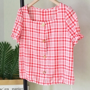 朗诗L20B3305时尚韩版气质显瘦休闲百搭格纹法式衬衣2020春装新款