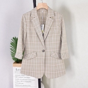 OJY7R161 2020时尚韩版气质修身百搭显瘦条纹撞色一粒扣西服外套