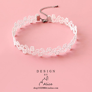 Alice花朵树叶蕾丝宽款choker超仙白色项圈女颈带锁骨链chocker
