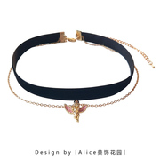 Alice2020年新款黑色复古天使吊坠choker双层项圈锁骨链chocker