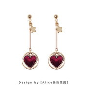 Alice酒红色爱心吊坠耳环925纯银耳钉少女心高级感气质无耳洞耳夹