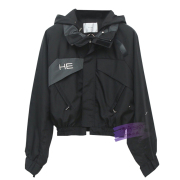 Heliot Emil HE字母Logo刺绣拼接机能冲锋衣男工装夹克女连帽外套