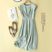 [SQB480068MG]美若天仙!冰沁绿色调马儿桑蚕丝印花系带连衣裙
