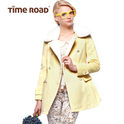 Time RoaD/汤米诺清新马卡龙修身双排扣獭兔毛领大衣T17411111559