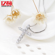 白18K金项链豪华群镶钻石吊坠 男女通用锁骨链 PT铂金十字架项坠