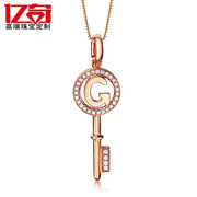 夏季新款18K白金项链玫瑰金锁骨链经典钥匙群镶钻石吊坠 铂金胸坠