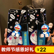 日韩可爱卡通iphoneX手机壳iphoneXR公仔支架苹果xs max长短绳软壳叮当猫r11哆啦A梦R17机器猫x23/x21/x9