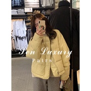 sandro asw短款加厚羽绒服女2021冬季韩版宽松纯色保暖连帽面包服