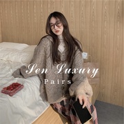 Sandro asw韩国chic秋冬复古显瘦V领别致珍珠扣金丝边拼接针织衫