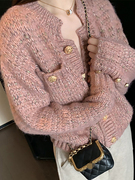 sandro asw小香风针织开衫外套女2021秋新款韩版宽松甜美粉色上衣