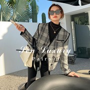 sandro asw法式格子毛呢西装外套女2022秋小香风黑色显瘦短款上衣
