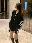 sandro asw小香风针织开衫外套女2021秋新款韩版宽松直筒拼接上衣