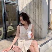 sandro asw法式无袖V领连衣裙女2022夏新款小香风气质惊艳背心裙
