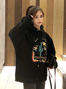 sandro asw黑色仙人掌连帽卫衣女秋冬新款韩版宽松慵懒风加绒上衣