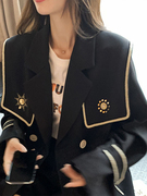 sandro asw小香风刺绣西装外套女2021秋韩版宽松英伦风海军蓝上衣