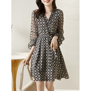 OLYFOU 2020秋季女装新款通勤气质长袖中长款印花翻领连衣裙女
