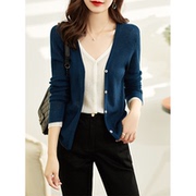 OLYFOU 2020秋季女装新款显白时尚撞色亮丝条纹V领长袖针织套衫女