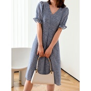 OLYFOU 法式小清新 修身显瘦高腰甜美仙气小雏菊印花连衣裙