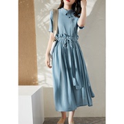 OLYFOU 2021夏季新款时尚造型拼接飘逸减龄气质纯色系带连衣裙女