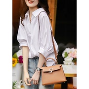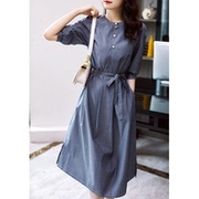 OLYFOU 显白显瘦轻滑舒适质感精梳棉衬衫式系带长袖连衣裙夏季女