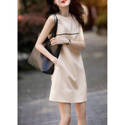 OLYFOU 2021夏季新款圆领无袖显瘦中裙桑蚕丝A版拉链口袋连衣裙女