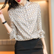 OLYFOU 可遇不可求轻奢小华丽印花鎏金真丝衬衫花边立领长袖上衣