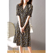 OLYFOU 小雏菊碎花连衣裙女夏2021新款法式小众V领收腰显瘦茶歇裙
