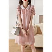 OLYFOU 俏皮减龄撞色娃娃领简约纯色短袖A字连衣裙2021春夏新款