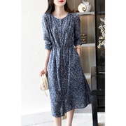 OLYFOUの垂顺飘逸 摩纳哥星空印花 系带通勤显瘦七分袖连衣裙女