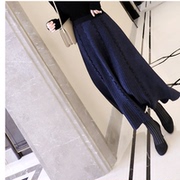 秋冬2019新款女装松紧腰伞裙显瘦遮肚子A字裙波浪纹中长款半身裙