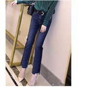 裤子女2019秋季新款深色水洗显瘦微喇叭裤修身高腰直筒牛仔长裤女