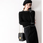 复古风打底衫2019秋冬新款长袖撞色内搭网红上衣羊毛针织衫毛衣女