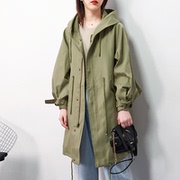 韩版宽松慵懒风风衣女2019秋季新款连帽中长款显瘦秋装长大衣外套