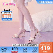 李子璇明星同款Kiss Kitty2021夏季新款方头高跟一字带时装凉鞋女