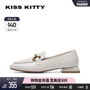 KISSKITTY单鞋女舒适羊皮一脚蹬鞋百搭粗跟英伦乐福鞋SA20592-36