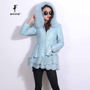 紫帝莎澜女装2017款狐狸帽绵羊皮羽绒皮衣獭兔摆中长女外套FA830