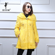 紫帝莎澜女装2017新款獭兔毛帽版绵羊皮羽绒修身百搭短外套JM-08