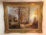 欧洲古董 西洋油画收藏 20世纪油画"乡村牧羊人" E decraene作品