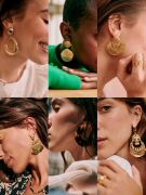 sezane 法国代购圆环造型法式耳坠 百搭半透明绿色黄铜挂坠耳环