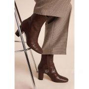 ROUJE 法国代购 CELESTE 葡萄牙制造牛皮中筒靴子高跟纯色压花