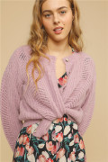 DOEN 美国代购 CHANDEL V领羊毛混纺镂空绞花钩编针织开衫毛衣