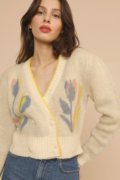 ROUJE 法国代购 LEANDRO羊毛混纺针织开衫外套 法式花卉印花毛衣