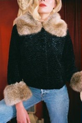 ROUJE 法国代购 KIM 人造皮草翻毛领短款外套 帅气飞行员夹克大衣