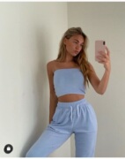 storets代购柔软弹力毛线圈面料运动高腰长裤 短款露肩抹胸上衣